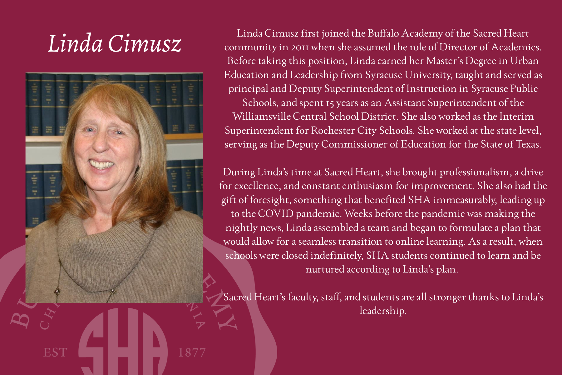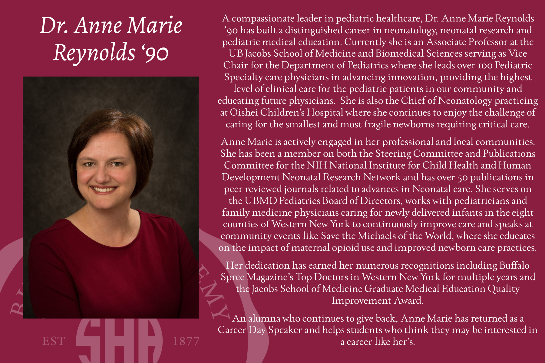 Buffalo Academy of the Sacred Heart is thrilled to recognize the best and most deserving alumnae through our annual Christus Super Omnia Distinguished Alumnae Celebration on November 5, 2025. Please join us in congratulating this year's honorees: